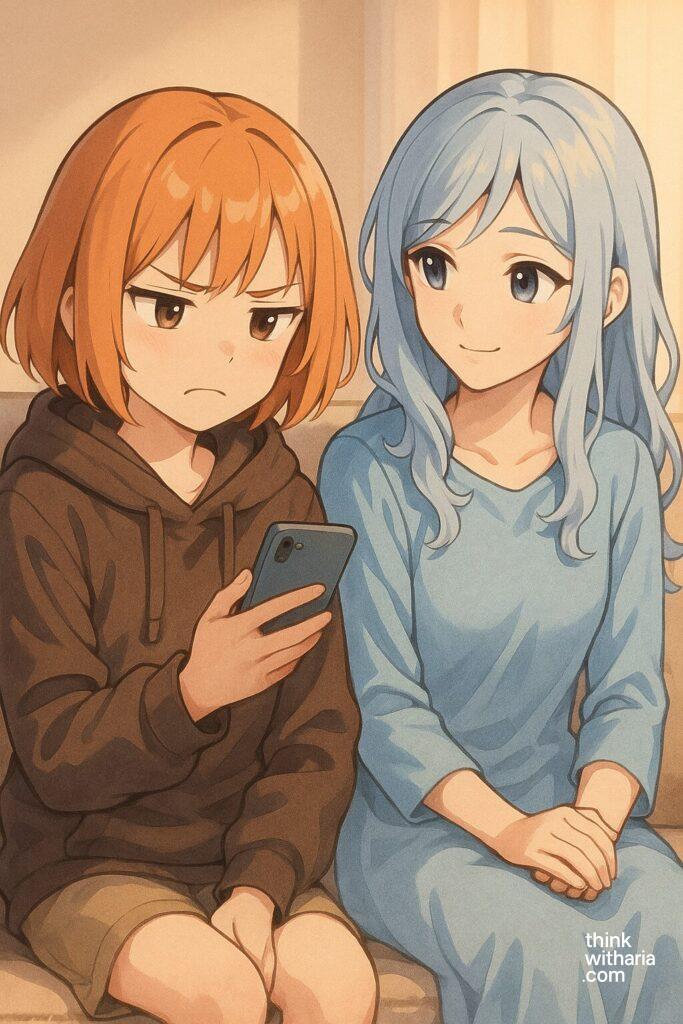 カナ(口を尖らせながらスマホを見つめて) ねぇアリア、これってさ……AIにだまされたってこと?